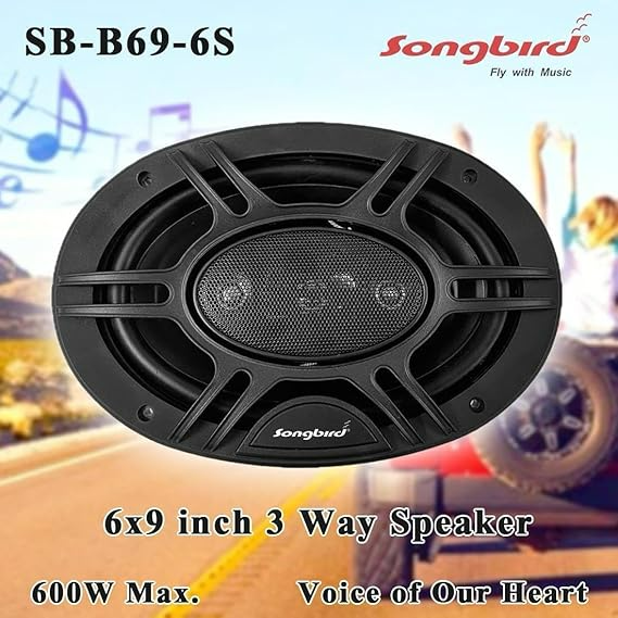SONG BIRD 6''x9'' Oval 600W Max 3 Way with Scratch Proof Plastic Frame 2 Speaker in Box SB-B69-6S Coaxial Car Speaker (600 W)| Tray Speakers
